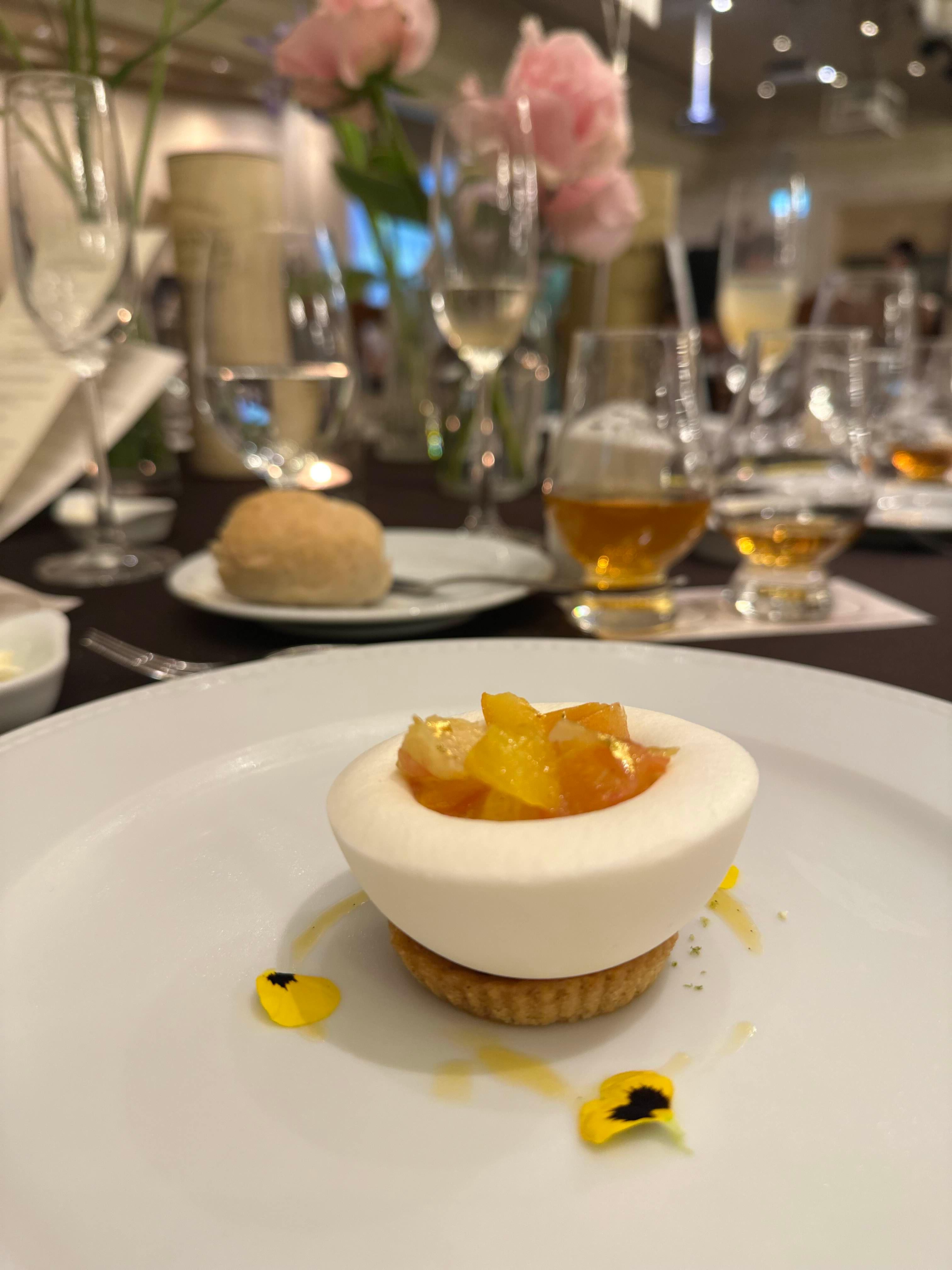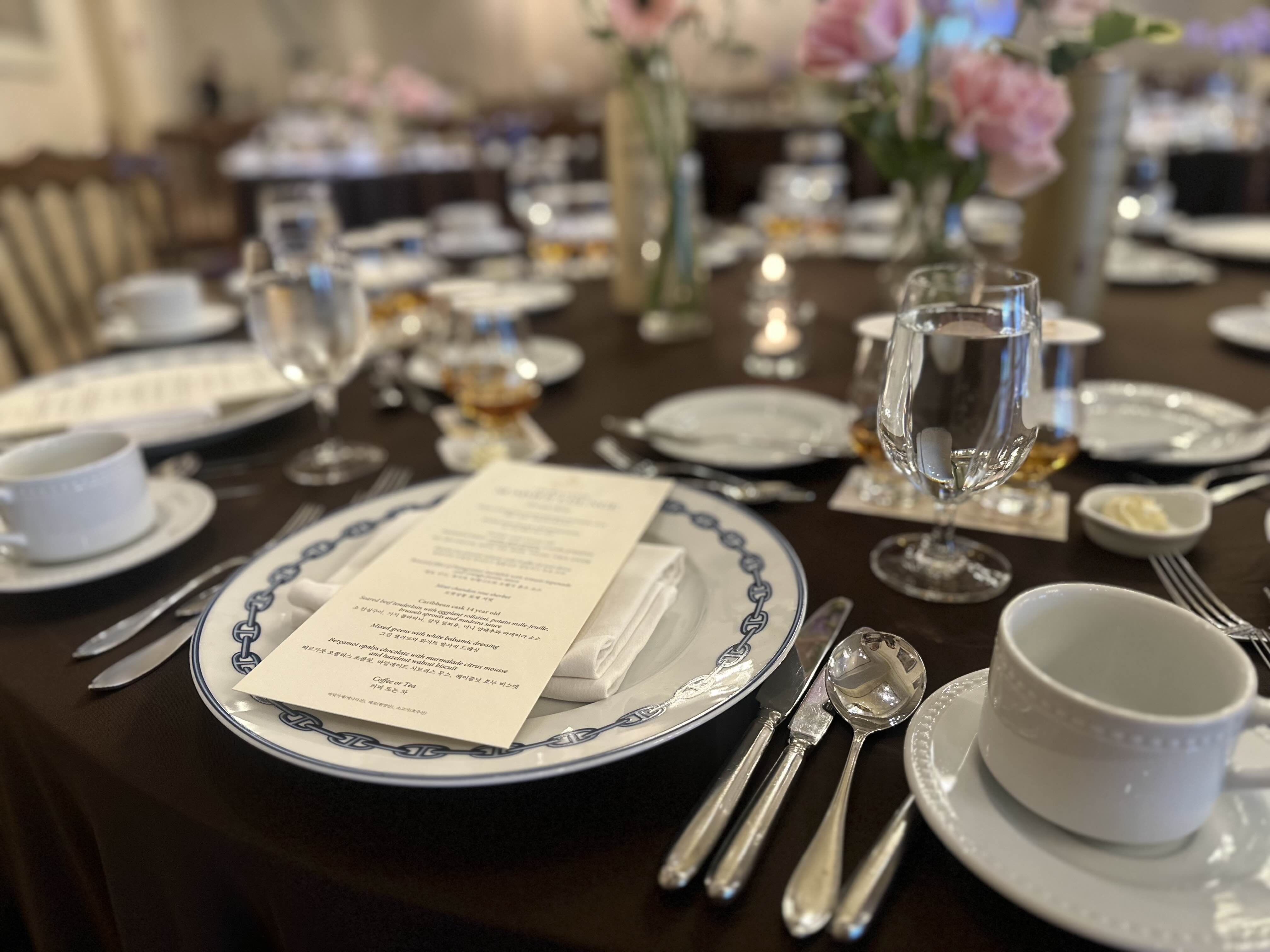 3층 갤러리 홀에서 시작된 웰컴 라운지에서는 진저향이 가미된 칵테일이 제공되었고, 이후 지정된 테이블에서 스페셜 디너 코스가 이어졌다. 디너는 사전 기획된 코스 요리로 구성되어 있으며, 각 요리마다 위스키 페어링이 함께 제공되었다.