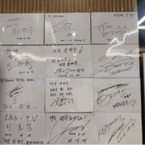 벽면에는 다양한 연예인 사인과 사진이 전시되어 있었고, 사장님께서 직접 테이블을 점검하는 모습이 인상 깊었습니다.