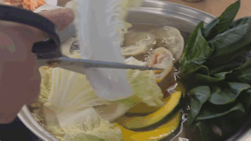 - 육수가 끓기 시작하면 불을 줄이고 만두를 넣습니다.