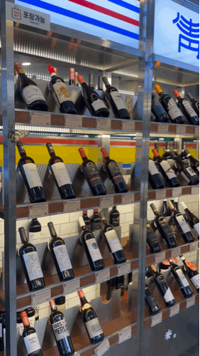 입구 쪽에는 다양한 와인이 진열되어 있어 현장에서 직접 선택 후에 주문할 수 있습니다.